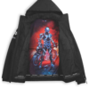De rode mesh voering voegt een leuke superheldenprint toe aan de binnenkant, waardoor de perfecte vrijetijdsjas is voor elke fan van motorsport.