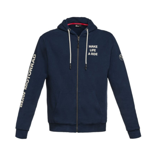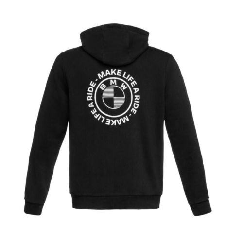 Met de nieuwe BMW Motorrad Zip Hoodie zorg je voor het echte gevoel van: Make Life A Ride. Ga voor de trendy, urban look met de BMW Zip Hoodie. De BMW Zip hoodie heeft een stijlvolle Make Life A Ride print op de achterkant samen met het logo van BMW Motorrad.